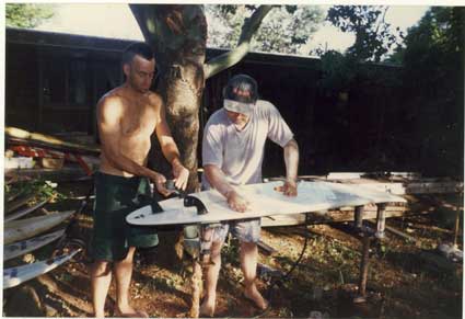 Dad and Tom Curren building a board for the film 5' 5" x 19 1/4